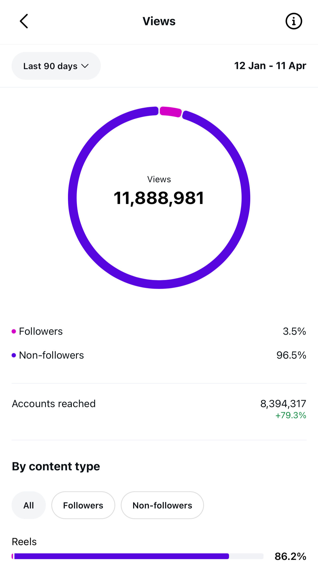These are real screenshots taken of my Instagram account (left) and TikTok account (Right). Instagram shows my views from January 12th to April 11th 2026 and TikTok shows April 11th 2025 to April 10th 2026. That’s nearly 30 Million views across the two.